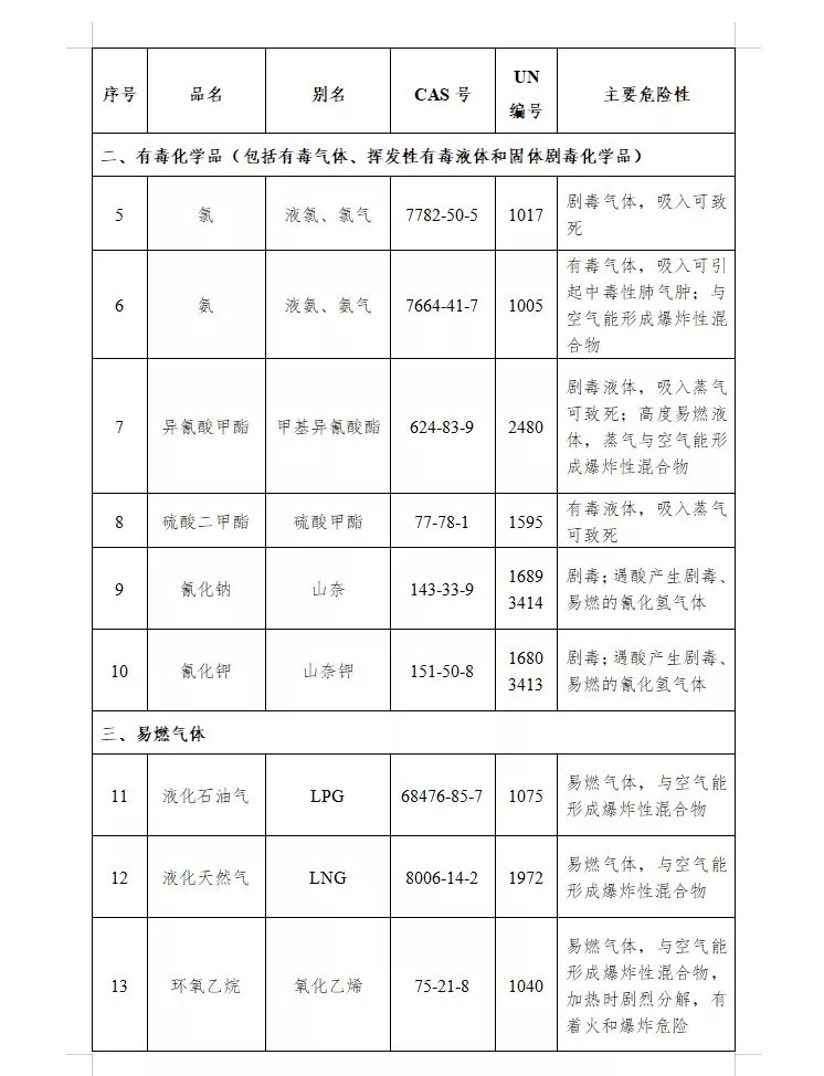 《目錄》列舉的特別管控危險化學品包括20類,分別是:硝酸銨[(鈍化)改性硝酸銨除外]、硝化纖維素(包括屬于易燃固體的硝化纖維素)、氯酸鉀、氯酸鈉、氯、氨、異氰酸甲酯、硫酸二甲酯、氰化鈉、氰化鉀、液化石油氣、液化天然氣、環氧乙烷、氯乙烯、二甲醚、汽油(包括甲醇汽油、乙醇汽油)、1,2-環氧丙烷、二硫化碳、甲醇、乙醇。